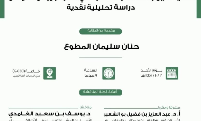 الدكتوراة في العقيدة والمذاهب المعاصرة للباحثة حنان المطوع